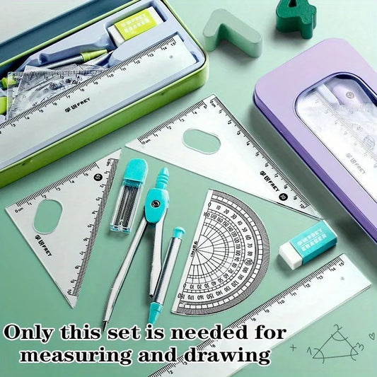 7-piece Set of Ruler, Triangle Ruler, Protractor, Compass, Student Stationery, Back To School Math Supplies