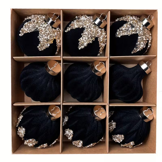 Burgundy Sequin Flocked Christmas Ball Ornaments