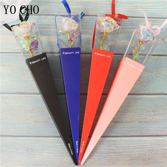 Galaxy Rose Eternal 24K Gold Flower Foil Plastic Artificial Roses Valentines Day Gift Beauty Golden Flowers for Wedding Decor