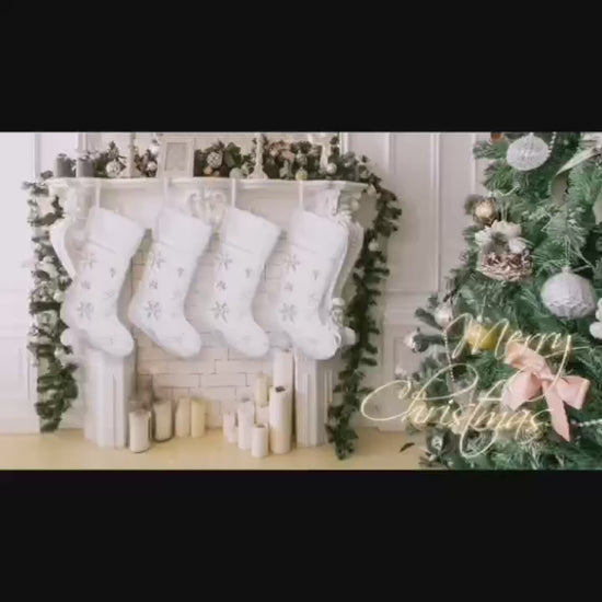Bring festive cheer and a hint of sparkle to your home this season with these beautiful white and gold Christmas stockings — where timeless charm meets modern elegance.